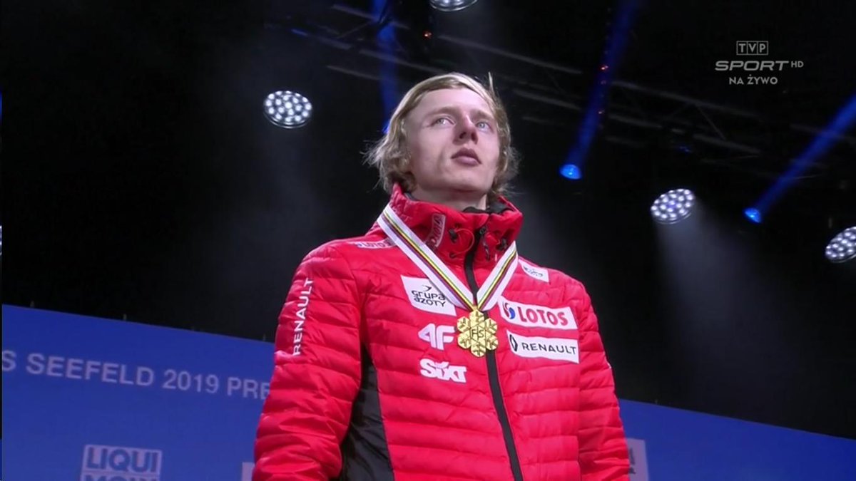 D jak Dawid Kubacki - mistrz świata ze skoczni normalnej. Został mistrzem w konkursie, który był jednym z największych absurdów w historii sportu. Mistrz, który miał zostać mistrzem, bo w treningach dobrze się spisywał na równi z Kraftem i Stochem, toteż oni zdobyli te medale. Kubacki złoto, Stoch srebro, Kraft brąz. Pierwsza seria w warunkach sypiącego śniegu, złych warunków wietrznych. Polacy nie brylowali. Ale potem zobaczyliśmy awans o 26 pozycji Dawida Kubackiego, Kamila Stocha o 17. Obejrzeliśmy prawdziwy cud w Seefeld, naszą wspinaczkę po glorię, po chwałę. Ryoyu medalu nie zdobył, mimo że prowadził po pierwszej serii. Medali też nie zdobyli ci, którzy byli w czołówce po pierwszej serii jak chociażby Filip Sakala. Ważne jest to, że Dawid Kubacki zdobył mistrzostwo w niesamowitych okolicznościach, skacząc najdalej, najlepiej. Z rekompensatą. Wygrał najlepszy. I to jest najważniejsze. A ponadto zanotował znakomity sezon, wygrywając premierowo w karierze w drugim konkursie w Predazzo, a razem z tym triumfem sześć razy stając na podium w sezonie. To dało mu 988 pkt i piąte miejsce w Pucharze Świata. A to może być tylko początek wielkich sukcesów Dawida, który wygrał z Goliatem, a przede wszystkim ze samym sobą.