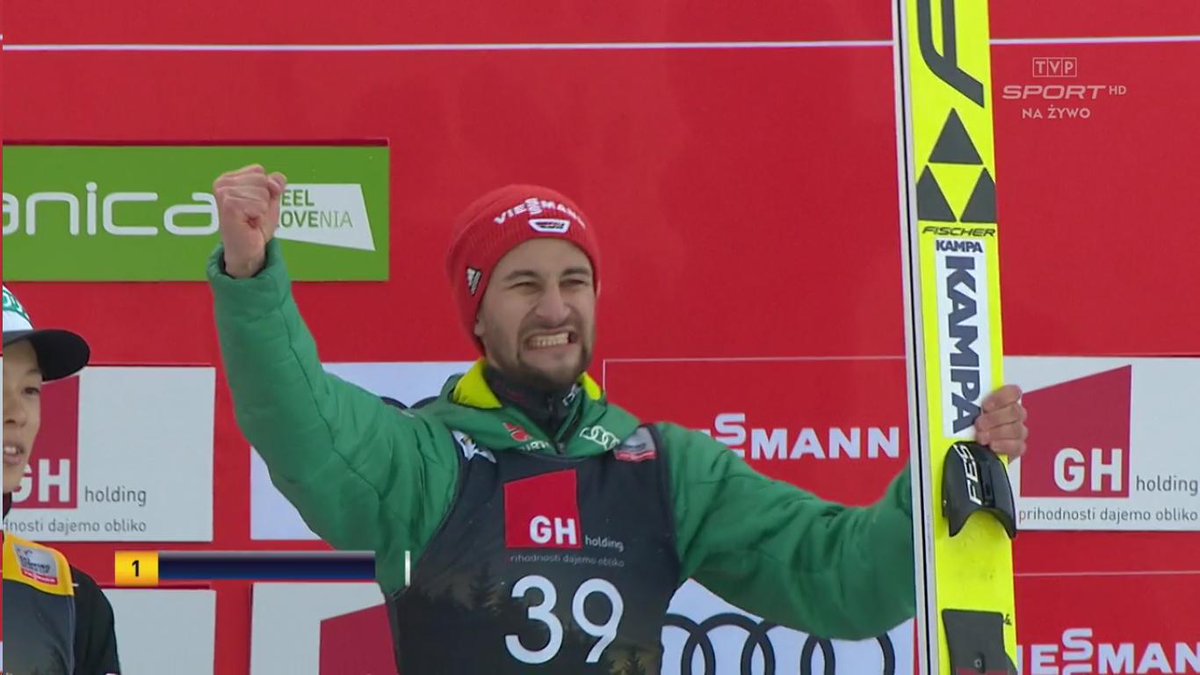 O jak Okurayama. Kamil Stoch na tej skoczni w konkursie sobotnim pobił rekord skoczni, lecąc DALEKO, DALEKO i lądując "z drugiego piętra" na 148,5m. To było coś niebywałego, on mógł jeszcze tak lecieć, ale wylądował. Majstersztyk. Myślę, że to jeden z takich ikonicznych momentów tej zimy. Kamil tego konkursu nie wygrał, bo wygrał Kraft dzięki przewadze z pierwszej serii. Ale rekord jest jego i pewnie długo pozostanie w tabelach rekordów skoczni.