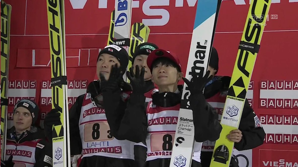 J jak Japonia. Reprezentacja tej nacji w głównej mierze dzieki znakomitym występom Ryoyu Kobayashiego, a także dzięki regularności Junishiro Kobayashiego, Yukiyi Sato i Daikiego Ito oraz dzięki dwóm podiom w konkursach drużynowych w Lahti i Oslo zajęli trzecie miejsce w klasyfikacji Pucharu Narodów. Jest to pierwsze podium Pucharu Narodów dla reprezentacji Japonii od przeszło 20 lat i triumfu wynikiem 6208 pkt w sezonie 98/99. A to był wynik fenomenalnej dyspozycji Noriakiego Kasai, Kazuyoshiego Funakiego, Hideharu Miyahiry (notabene trenera reprezentacji Japonii w tym momencie), Masahiko Harady czy Kazuyi Yoshioki.