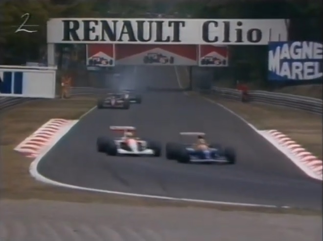 Grand Prix Włoch z sezonu 1991 - 12. z 16 rund sezonu, przed wyścigiem w generalce prowadził Ayrton Senna. Brazylijczyk prowadził przez ponad połowę dystansu wyścigu. Prowadziłby dłużej, gdyby nie zblokowanie na 21 okrążeń do mety kół w pierwszej szykanie tamtejszej konfiguracji Monzy, przez co Nigel Mansell zniwelował już i tak małą stratę i wyprzedził urzędującego (i przyszłego) mistrza świata. Ten zjechał do boksu, co sprawiło, że Mansell zbudował przewagę, a prowadzenia nie oddał do mety. Podium uzupełnili Senna i Prost. Ciekawy wyścig, bo był spin Patrese, który okrązenie wcześniej wyprzedził Sennę. Włoch odpadł z wyścigu, rzecz jasna, bo doszło do zatarcia silnika. Poza tym pod koniec dystansu walka o pozycje w punktach pomiędzy de Cesarisem i Piquetem, powrót Senny po pit-stopie polegający na wyprzedzaniu rywali na nowych oponach. To było łatwe. Szczególnie w przypadku Gerharda Bergera (kolega zespołowy Senny), który w ogóle nie stawił mu oporu. Takie trochę team orders. Berger był czwarty, piąty, z pierwszymi punktami w karierze, był Michael Schumacher (wtedy kierowca Benettona-Ford), a szósty był Nelson Piquet. https://t.co/BzqrFm1TjC?amp=1