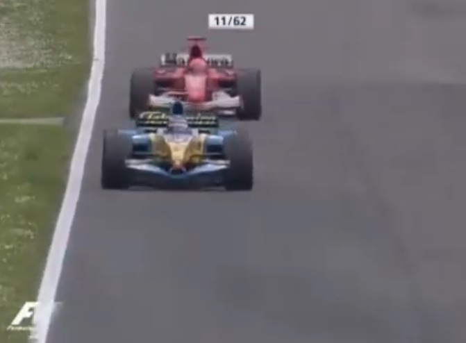 Grand Prix San Marino 2005 - przedostatni wyścig F1 na torze Imola, czwarta runda sezonu 2005, który był dziwny. I to nie tylko przez kontrowersyjne Grand Prix USA na Indianapolis Motor Speedway. Nie można było zmieniać opon w trakcie wyścigu, no chyba że była złapana guma albo zmiana warunków pogodowych. Mechanicy podczas pit-stopów stawali i sprawdzali stan opon. Możliwe było tylko tankowanie/zmiana nosa w razie uszkodzeń. Długo po awarii Kimiego Raikkonena na prowadzeniu jechał, ku radości Tifosich, Michael Schumacher po wyprzedzeniu Jensona Buttona, ale po zjeździe do boksu przewagę zaczął budować Fernando Alonso. Gonitwa siedmiokrotnego mistrza za Hiszpanem w Renault zakończyła się na 11 okrążeń do mety. Te 11 okrążeń to były masowe próby wyprzedzania i piękny pokaz defensywy w wykonaniu Alonso, który ten wyścig wygrał. W ITV była spora afera, bo nie pokazali trzech ostatnich okrązeń w całości, dajac reklamy i włączając się w połowie przedostatniego kółka, za co zostali zrugani przez widzów i Ofcom. Doszło do tego, że w studiu przed następną rundą tamtego sezonu prezenter studia przepraszał widzów za ten incydent, a trzy ostatnie okrążenia wyemitowano w całości jeszcze w dniu odbycia sie wyścigu na Imoli. Podium uzupełnił Jenson Button, który startował z pole position, ale po wyścigu za niewłaściwą liczbę paliwa dostał on, jak i Rubens Barichello DSQ. Podium uzupełnił w takim razie Alexander Wurz z McLarena, dla którego było to drugie podium w karierze i jedyne w jedynym występie w tamtym sezonie, bo zastępował Juana Pablo Montoyę. https://t.co/hpCY1dtKNS?amp=1