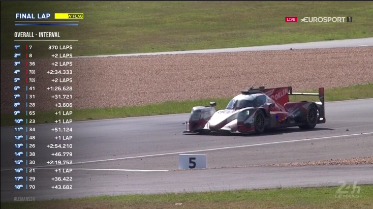 Kto wygrał, skoro nie #41? #31, a to także Team WRT. W końcówce wyścigu zmagali się z problemami, co sprawiło, że Jota ich dogoniła i było blisko, by w końcówce stracili ten triumf. Na kresce stracili do nich 0,7s. Było bardzo blisko, ale udało się dowieźć ten triumf do mety i przynajmniej jedna połowa garażu belgijskiego zespołu może się cieszyć. Gdyby nie problemy, do walki o wygraną mógł zamieszać się G-Drive, jednak skończyli tę rywalizację na siódmym miejscu. ARC Brastilava, która pierwszy raz jechała w prototypie Oreki dojechała na piętnastym miejscu. Stary, ale jary Miro Konopka walnie się do tego przyczynił. Albo i nie, bardziej Oliver Webb, który wykonał 90% roboty. Miro i jego syn Matej tylko jechali. Ich czasy nie były wybitne, ale hej, ukończyli wyścig, mimo problemów technicznych. Brawo dla nich! Spora kompromitacja United Autosports, mogli być faworytem, mogli walczyć o wygraną, tymczasem awarie sprawiły, że jedno z aut musieli wycofać, a drugie dojechało czwarte.