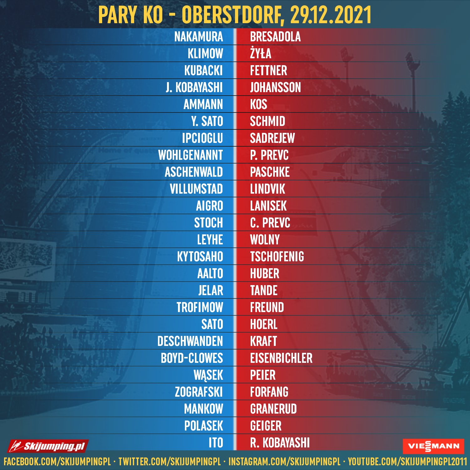 OBERSTDORF DO WORA, A W PIĄTEK I SOBOTĘ NOWOROCZNE SKAKANIE W GARMISCH-PARTENKIRCHEN, GDZIE MOŻE POLACY SIĘ LEKKO ODBIJĄ, RYOYU BĘDZIE WALCZYŁ O UTRZYMANIE PROWADZENIA W TURNIEJU, A GEIGER, GRANERUD, LINDVIK, A NAWET I JOHANSSON BĘDĄ PRÓBOWALI GO DOGONIĆ. BO POLACY JUŻ NIE GRAJĄ O ZŁOTEGO ORŁA.
