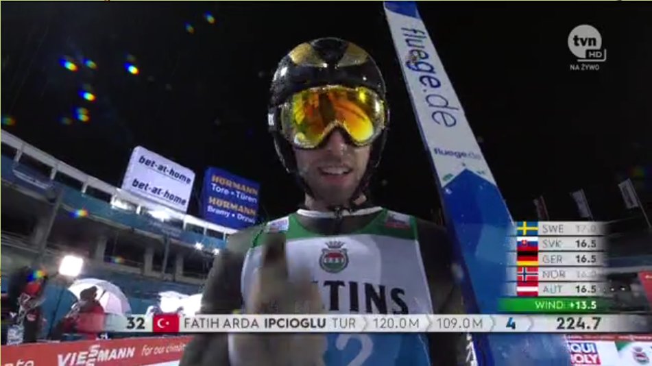 TURECKIE SKOKI SILNIEJSZE NIŻ KIEDYKOLWIEK! IPCIOGLU Z PUNKTAMI! I to dwoma! Wygrał rywalizację w parze z Sadrejewem, skacząc 120 metrów. Zaskoczył go, skoczył daleko jak na niego i awansował pierwszy raz w historii Turcji do finału zawodów Pucharu Świata. Najważniejsze, że się nie spalił i pokazał charakter, na który wielu czekało i punkty przyszły w optymalnym momencie/ Bo właśnie w TCS można było szukać okazji na punkty dla potężnego Fatiha Ardy. Drugi skok to było 109m, jednak to pozwoliło mu zachować 2 pkt, zająć 29. miejsce, zdobyć dożywotnie prawo startu w Pucharze Świata i zrobić najlepszy wynik dla Turcji w sportach zimowych od nie wiem kiedy. Pokonał czterech Polaków, zdobył to, czego oni nie zdobyli w środę - punkty. Zawodnik z Erzurum, gdzie jeszcze parę lat temu skocznię zniszczyło trzęsienie ziemi. Tak. Turek pokonał Polaków. Nie przewidzieliście się. Fatih dał radę w sposób niesamowity. Pokazał, że drzemie w nim moc, która tylko czekała na moment, by ją wykorzystać. Trzymam kciuki za to, by jeszcze nie raz zaskoczył podczas tego turnieju, a może nawet i w innych konkursach. Bo ma szansę. I to wielką.