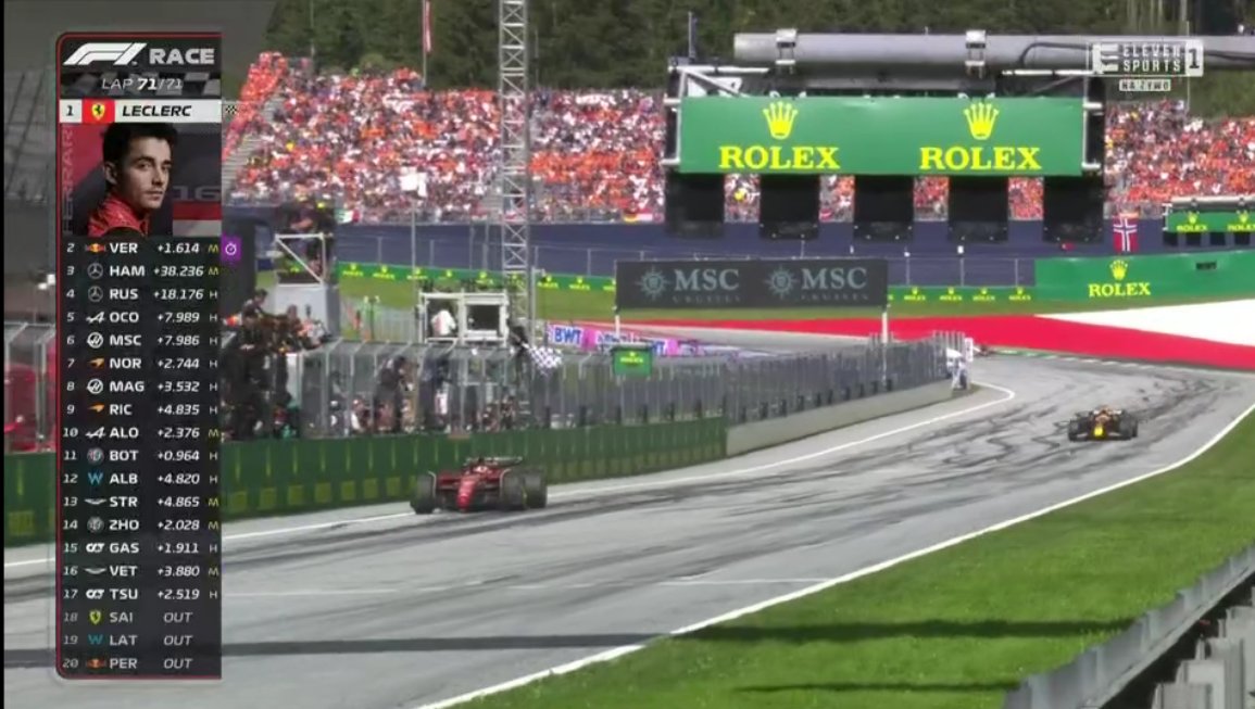 | Charles Leclerc wygrywający ostatni wyścig w sezonie dla Ferrari, GP Austrii 10 lipca, serio, fot. Eleven Sports/własne |