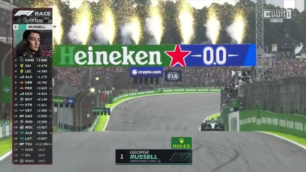| George Russell wygrywający pierwszą Grand Prix w swojej karierze na Interlagos, fot. Eleven Sports/własne |